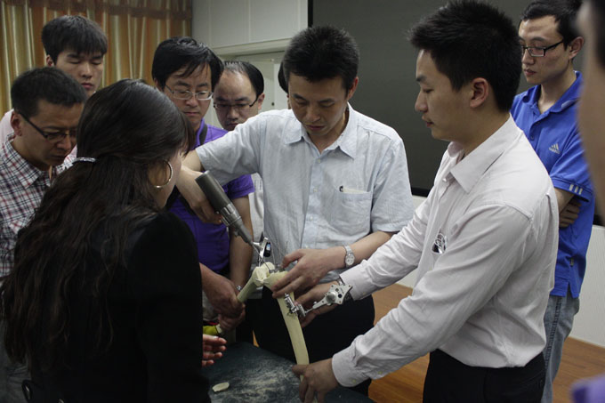 2011年6月23日,西京医院“导航计算机辅助下全膝关节置换术精品课堂”在骨科医院一楼示教室圆满结束。西京医院关节外科主任朱庆生教授与史赛克导航设备部经理Michael Yeh分别为培训致欢迎辞。
