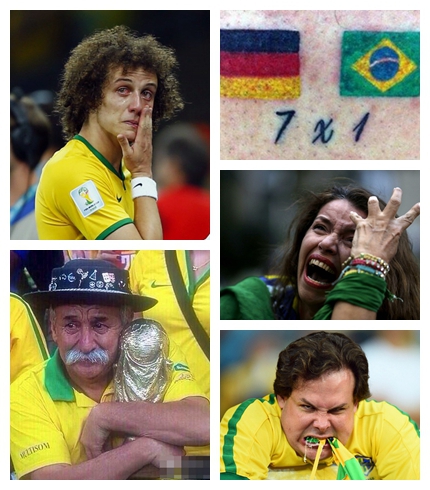 可是足球是圆的,永远让你无法确定它会转到哪个角度停下。我想这一天,全世界没有一个人想到7:1的结局,除了赌球坐庄者也许还在点头微笑。巴西队——你还敢再丢人一点吗?当然,很多人终于心中卸下了包袱——中国队原来也没什么值得看不起自己的,你看,还有比你更过分的呢!人家还是大牌,脸皮更薄不是?也没怕打脸啊!