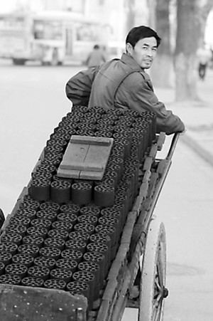 买煤时,人们先到煤铺交费,再到领煤处让专门送煤的板车师傅帮着把煤码在车上。买煤的人就跟着车一起回家。每家都有一块专门放煤的地方。师傅会用一种专门的煤夹子,一串串把煤夹到一个板子上,再搬到院儿里码好。每次我都在想,这搬煤的师傅可是力大无穷啊,现在想来是个重体力活儿。