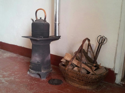 冬季煤炉要放入屋里,兼用于取暖。这时要装上烟筒,它是用薄铁皮制成的,可以一节一节互相接上。烟筒需要拐弯的时候,有专门的九十度角的拐脖来连接。烟筒在需要取暖的房间沿着窗户的上方走行,最后通到窗外。