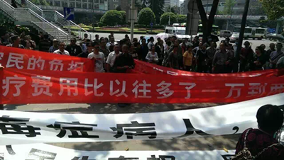 另据《忠县网》消息,时隔重庆医改六天后,重庆市民于3月31日自发聚集占道,对重庆市医改政策表示严重抗议,抗议者情绪激动,特别是病患以及病患家属,拉起横幅誓死捍卫生存的权利。