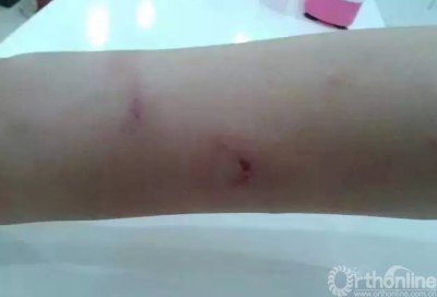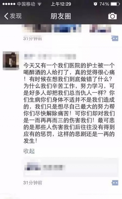 打人者是送一个醉酒至神志不清并且摔伤头部的朋友到医院就诊,先到五官科处理伤口,然后前往急诊科找内科医生,医生开具处方之后,打人者没有按照正常程序去取药,而是立即到注射室要求护士打针(从视频可以看到):1、打人者进注射室时没有拿药;2、护士正在为其他病人服务。于是,护士告知其先要到药房取药,再来打针。紧接着打人者便开始了暴行。由于注射室中的另一间房间没有监控视频,所以我们只能从视频中看到护士挨了两巴掌,但实际上受到的伤害远不止于此,下面有几张伤者照片和爆料图片。(为了保护他人隐私,部分图片已进行一定处理)