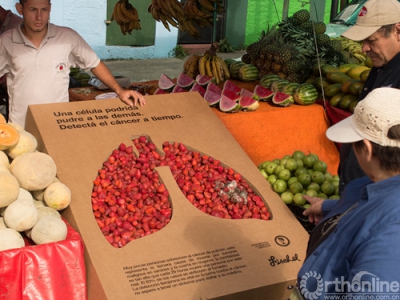 在哥斯达黎加最受欢迎的农贸市场,人们看到了一幅幅有趣的场景:用腐烂的水果来解释癌症的攻击性,并以此来提高人们对健康检查的重视。