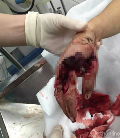15日中午,欧医生被紧急送往中山一院救治。接诊的医生看到,欧医生身上多处受伤,尤其右手伤势严重。在接受手术之前,欧医生的眼角一直掉眼泪,也不说话,心理受到很大的创伤。中山一院主刀医生显微外科朱庆棠副教授表示,患者全身有三处重要刀伤,分别是左侧肩胛、左侧手臂和右侧手背位置,其中左侧肩胛位置已伤及肩胛骨,险些伤及动脉血管。他表示,病人术后恢复情况有待观察,手部功能可能会受到影响。