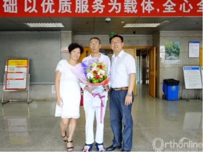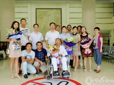 2015年8月15日上午十时,贵阳市第四人民医院业务副院长葛兵,院办公室主任黄靖带领骨三科部分医护人员及闻讯赶来的医院同事,手捧鲜花来到贵州省人民医院,迎接初愈转院的宋开芳主任。贵州省骨科学会主任委员、贵州省人民医院田晓滨副院长,ICU病房主任和病房护士长,纷纷来到宋主任所在病房,祝福这位坚强的同仁早日康复,重返他心爱的手术台。