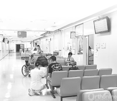 日本东京一家医院内,护士向候诊病人进行讲解。