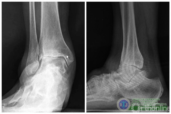 患者,顾XX,女,57岁,因“右踝类风湿性关节炎关节肿痛、活动受限15年,加重1年”入院。上海瑞金医院足踝外科接诊检查后发现该患者右踝关节软骨破坏严重,关节活动严重受限,经与患者反复沟通、解释病情,最终患者要求进行全踝关节置换手术。