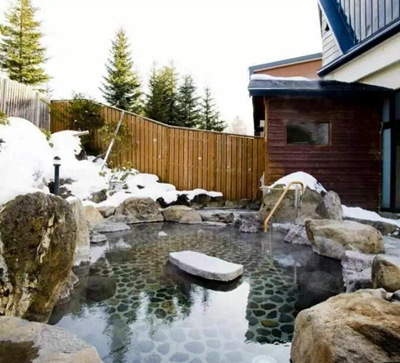 打开后院的门,耐住蜂拥而来的冷夜,走向黑暗之中。各色的山石围成一个偌大的不规则的类似天然的山间潭水,周围几束暗光映出或是亮绿或是火红的树影,远处是不高不矮的竹蓠,适当遮住不必要的视线,空气是清冷的,让人有点儿发抖,然而没入泉水就顿生温暖。