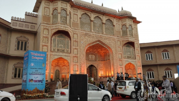 第60届IOACON在印度中部的粉红城Jaipur(斋普尔)召开。初到印度,并不完全像我们想像的一样,虽然大街上随处可见的急速行驶的三轮蹦蹦车,似乎没有秩序,但学术讨论还是很热烈。根据注册区的不完全统计,国际讲师56名,至少有6000名国内代表注册,共为期3天的学术会议,教程和自由发言分布在6个学术大厅,内容涉及脊柱、关节、创伤、运动医学、骨肿瘤、肢体重建等等,还有研究生教育课程和SICOT、AAOS、OTA等国际继续教育课程。估计至少有100余家公司参会,展厅里琳琅满目,人头攒动,各式各样的器械,有效的利用着大厅空间。