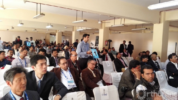 在髋关节疾患session,除了讲述髋部生物力学、髋臼周围截骨和外科脱位手术技术的细节,IOA主席Jhunjhunwala教授专门介绍了骨盆支撑截骨术(PSO)治疗髋关节高位脱位及化脓性髋关节炎后遗症经验。印度医生热情而友好,允许我们讨论问题,当我们没有听清楚,“pardon?”的时候,他们都会努力重新发音,仔细解释个中细节。当Jhunjhunwala教授发现我们积极参与病例讨论时,随即大声向全场的代表们介绍了来自中国的秦泗河教授一行,并session结束后在会场与我们合影留念,这是对我们工作的最高褒奖。