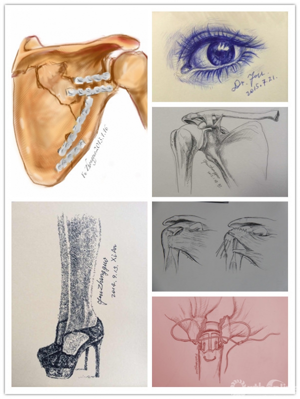 多年以来通过在创伤学组与国内创伤医师精英团队的交流与学习,以及自身的美术素描功底,更加直接地与同行沟通,获得了广泛的好评。
