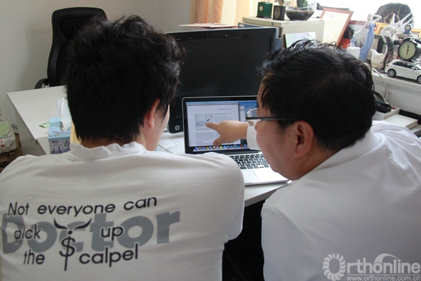 无论是出门诊还是在办公室,付中国都会随手携带两样高科技“武器”:一个迷你Ipad、一个酷酷的黑色液晶写字板。当他给病人解释病情或手术方案时,为了便于病人及家属理解患部异常构造及拟定的解决方案,他通常会拿出这两个宝贝之一,将患处的骨骼、肌肉、神经、韧带等组织结构快速勾勒出来,对比分析正常与病态组织与结构的不同之处,然后画出他将如何通过手术使患者的受损部位尽可能恢复正常。