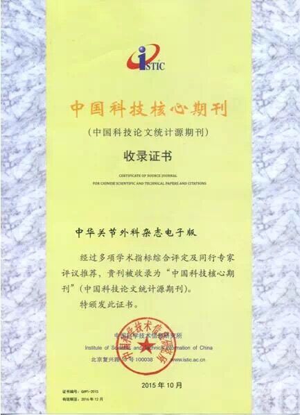 在北京召开的中华医学会第二十五次全国委员代表大会上,《中华关节外科杂志(电子版)》荣获优秀电子期刊奖。
