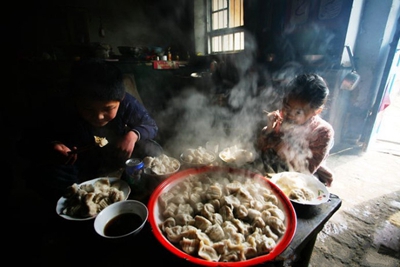 “那个,饺子好吃吗?”“嘿嘿,好吃好吃!”“那多吃点儿啊!”“不吃啦不吃啦,太多了。”可是,其实没吃几个。孩子们对饺子没什么兴趣,只是敷衍着我们。看着手里的月牙状的饺子,里面是猪肉大葱的馅儿,心里一片落寞。