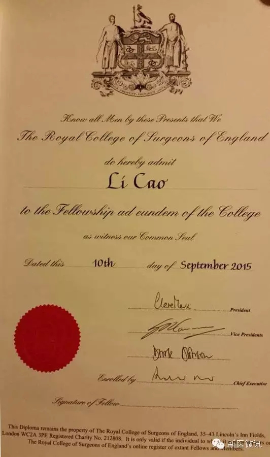 近日新疆医科大学一附院骨科中心曹力教授赴伦敦参加英国皇家外科学院年度典礼并接受院长M S Clare Marx颁发的证书。曹力教授由于在关节外科领域所做的工作及骨科国际交流方面所做的贡献,由英国皇家外科学院推荐于2015年9月当选英国皇家外科学院院士(FRCS, Fellow of Royal College of Surgeons of England),2013年还被选为美国髋膝关节外科学会(AAHKS)国际会员。