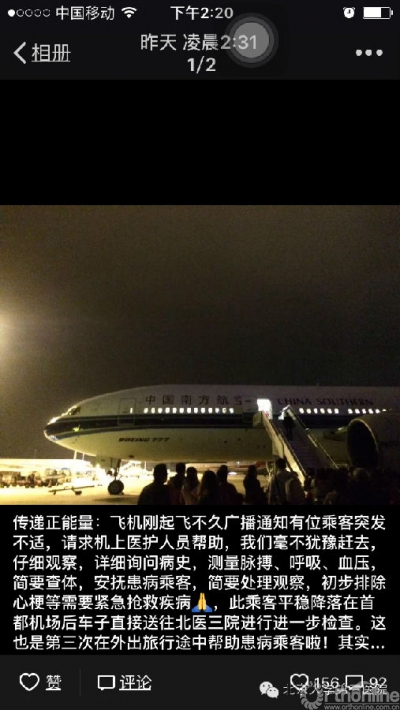 这条小小的微信没有华丽的语言,也没有精美的配图,凌晨下飞机后发出,等到上午再打开手机一看,在短短的几个小时内竟有156人点赞,92条留言,令我十分意外,还被科里的教授称为“旅行途中一流的医护配备”。