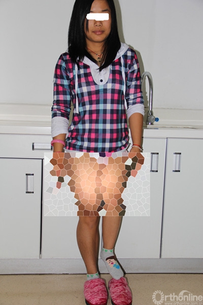 患者术前照片(2012年拍摄)显示,左腿比右腿“短”了一大截