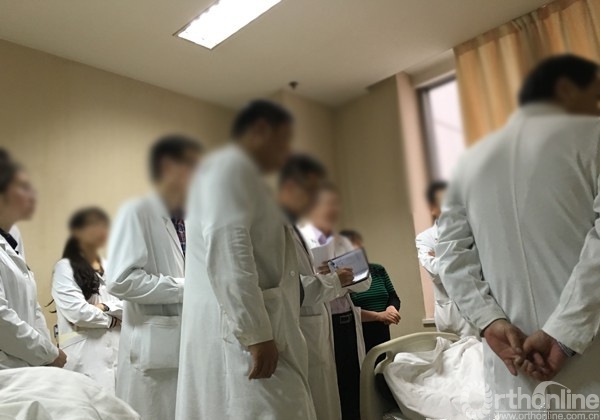 站在最后面踮着脚、双臂伸直稍外展,伸长脖子那是实习和进修生。