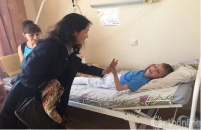 李坤萍女士握住脑瘫患者的手 ↑