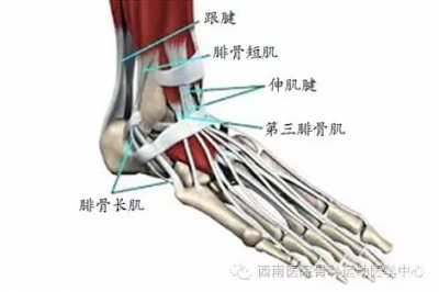 2治疗 下胫腓韧带损伤可通过踝穴位X片确诊,内外侧韧带操作容易漏诊,可通过内外翻应力试验结合踝关节MRI确诊。有时外踝易发生撕脱性骨折。内翻位摄片可见撕脱性骨折块。若韧带部分损伤或松驰,可采用石膏或踝支具固定,保守治疗。若韧带完全断裂,建议采用韧带修复或重建手术。