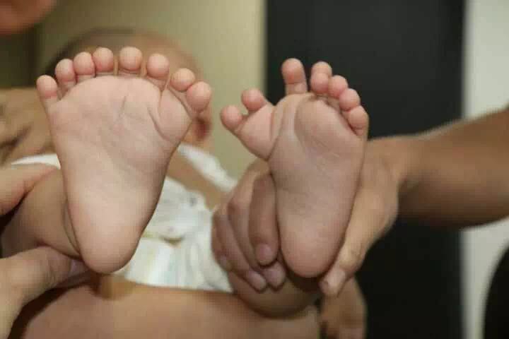 上周,弘弘的双脚手术在市六院进行,手术分成两个组,双脚的手术同时进行。1个多小时的手术时间里,医生为孩子切掉了多余的脚趾,并对脚趾的肌肉进行了再造。手术后弘弘的两只胖脚丫看上去和正常的孩子差不多了。