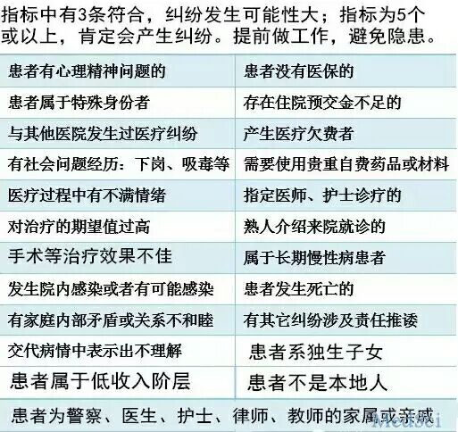 指标中有3条符合,纠纷发生可能性大;指标为5个或以上,肯定会产生纠纷。不管是否百分百就是如此,大家可以参考,提前做工作,避免隐患。