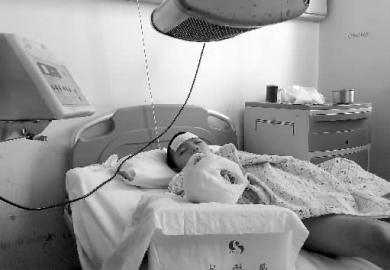 懂事的小浩躺在病床上,没有哭一声