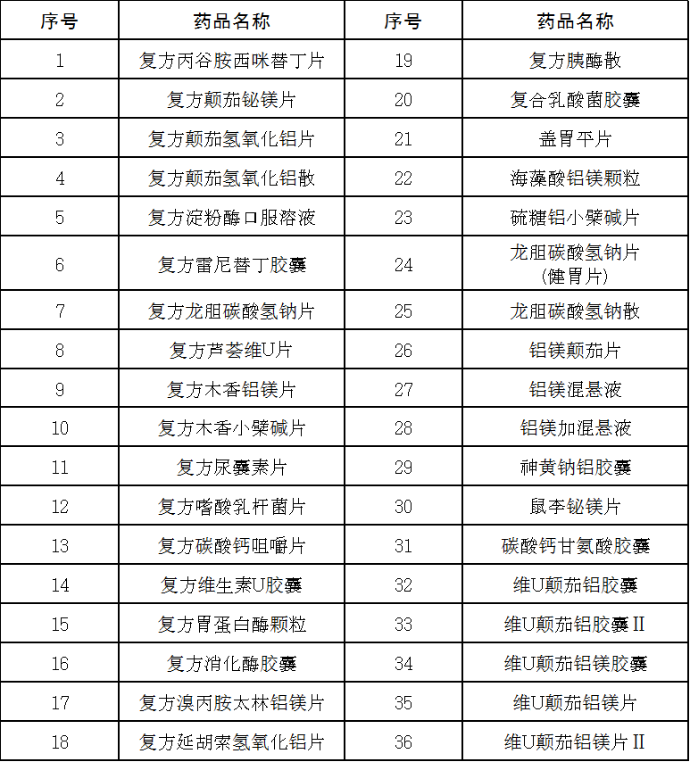 6.西药部分第158号“缓解消化道不适症状的复方OTC制剂”包括的品种见下表: