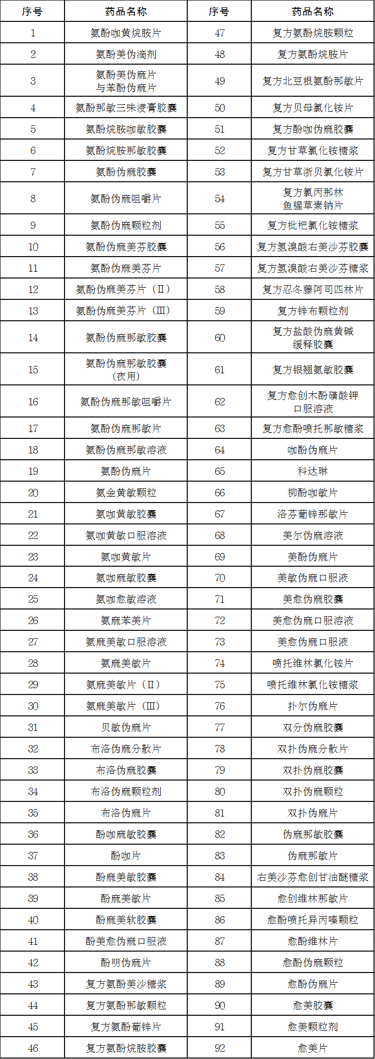 10.西药部分第1166号“缓解感冒症状的复方OTC制剂”包括的品种见下表: