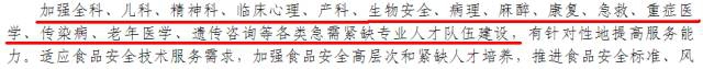 加强全科、儿科、精神科、临床心理、产科、生物安全、病理、麻醉、康复、急救、重症医学、传染病、老年医学、遗传咨询等各类急需紧缺专业人才队伍建设。(Ps:看来以后医生职业不热都不行了?)