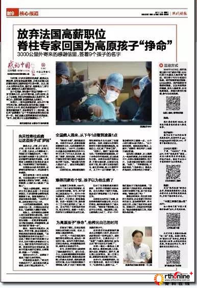现代快报整版报道邱勇教授救助青海贫困脊柱侧弯患儿的事迹
