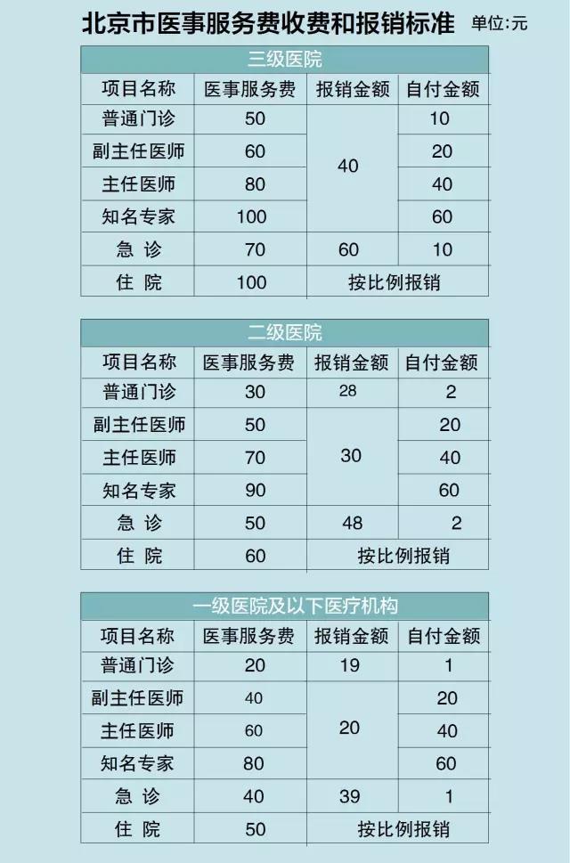 其中,门诊医事服务费实行定额报销,参保人员发生的医事服务费按规定报销,并且不受起付线和封顶线的限制。住院医事服务费按比例进行报销。
