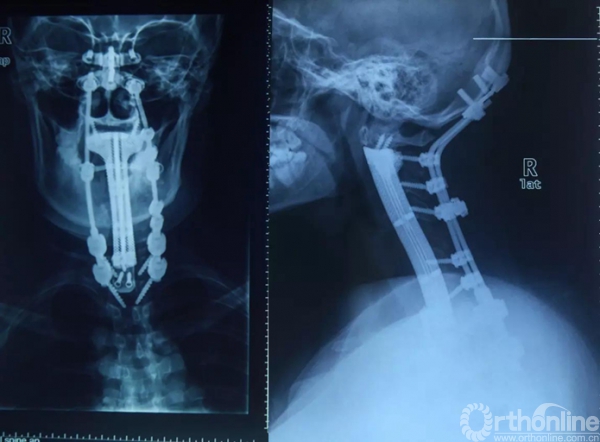 在麻醉科的全力配合下,肖建如主任、杨兴海副教授团队先后分二期实施了颈后路和前路的手术。经过13小时的奋战,医生们成功完整切除了跨越6个椎节巨大肿瘤并实施了3D打印全颈椎人工椎体置换术。据悉,术后,患者未出现任何并发症。