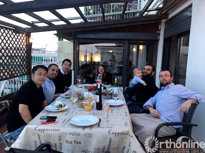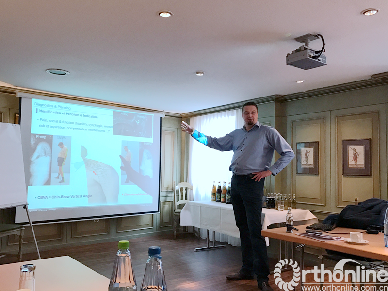 Kollar教授当天下午就给我们准备好了迎接“大餐”——颈胸段后凸畸形的小型seminar,Kollar教授对颈胸段后凸畸形的截骨做了专题讲解,6位来自地球不同位置的医生分别结合自己所在中心的经验发表了对这一专题的看法,在这样的学术交流中,大家很自然地倒过了时差(图2)。