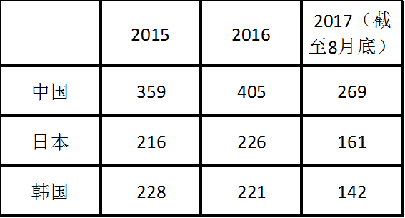 比起日本和韩国,我们还有很大的上升空间。查询2015、2016和2017(截至8月)年,在Pubmed上以cervical spine为关键词发表的英文学术论文,中国论文总数连续三年列居第一(表2),这些优质论文完全有可能获得CSRS大会发言。
