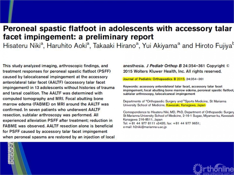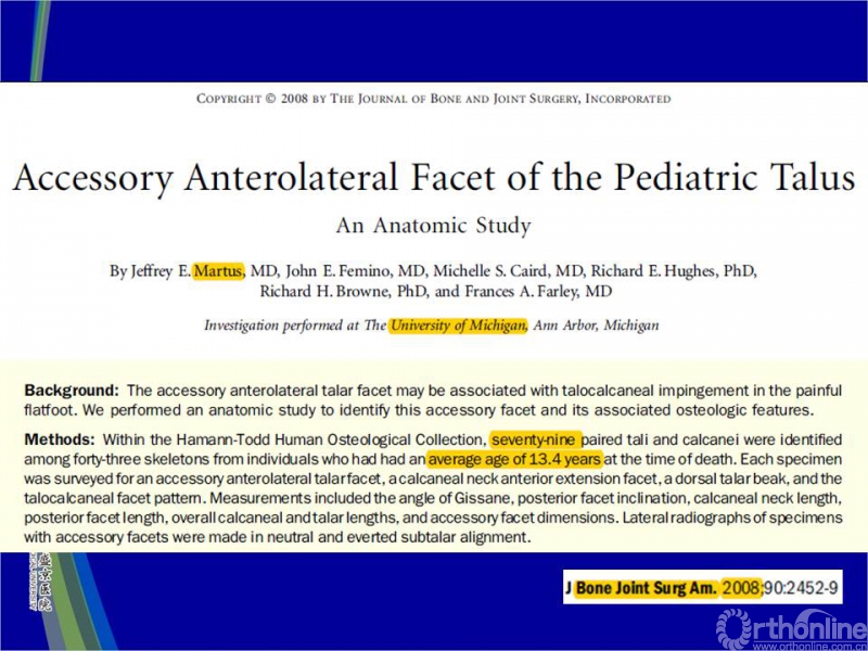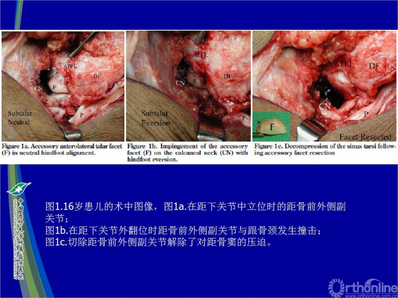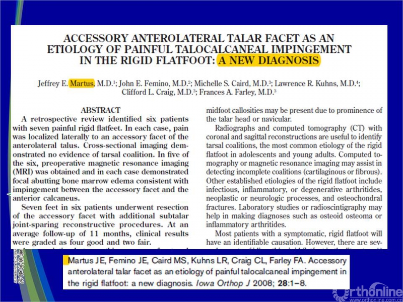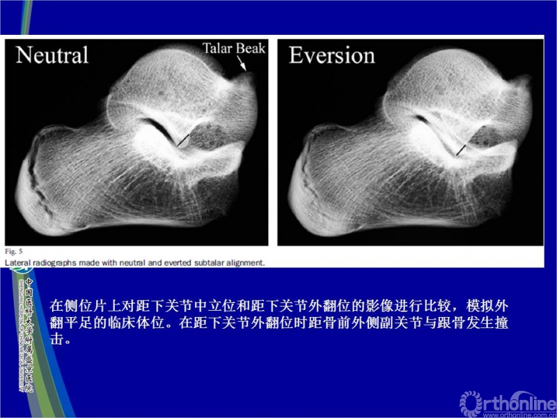 1. 距骨前外侧副关节导致距跟骨在运动时撞击疼痛,是近年来足踝外科新认识的疾病