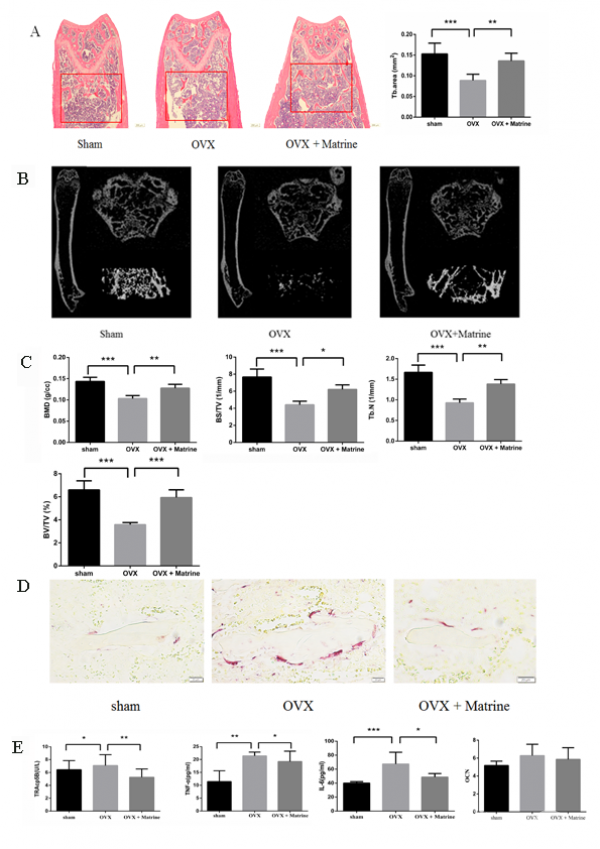 图2:苦参碱减轻OVX小鼠骨质丢失