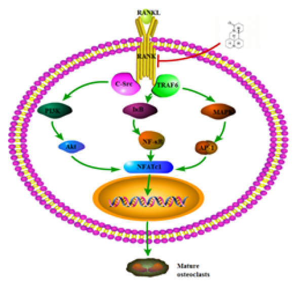 Matrine对RANKL介导的NF-κB,MAPK,AKT通路等均有明显的抑制作用。