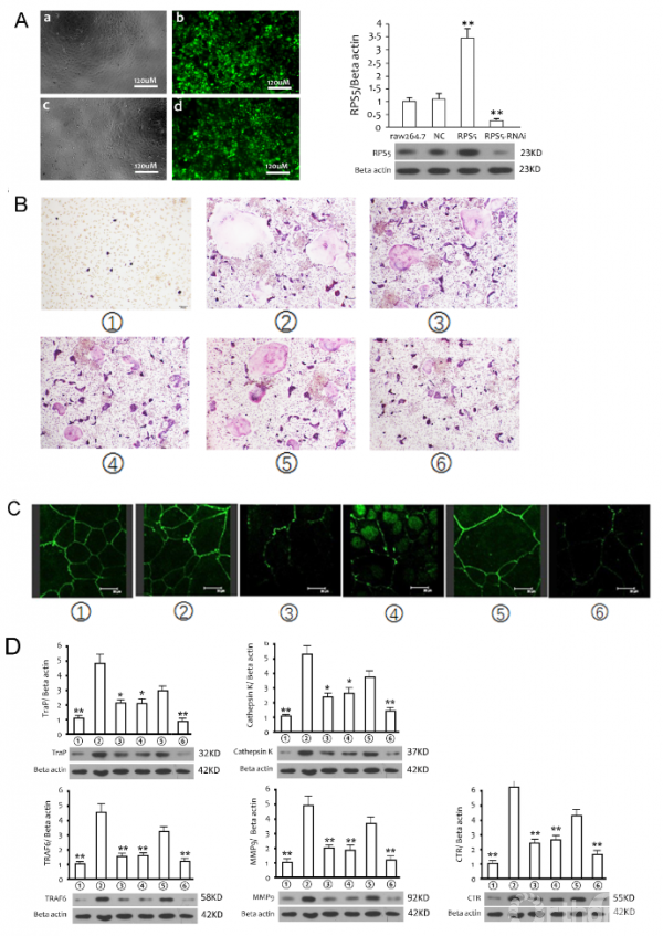 图3:RPS5过表达、敲减后影响破骨分化。