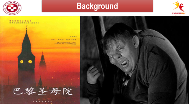 作为一名医生,我不禁好奇钟楼怪人得的是什么病?于是根据雨果对其外貌特征的具体描述(不对称而扭曲的躯干,背部隆起的“山丘”和驼背),推断出“钟楼怪人”得的是先天性脊柱侧弯(CS)。