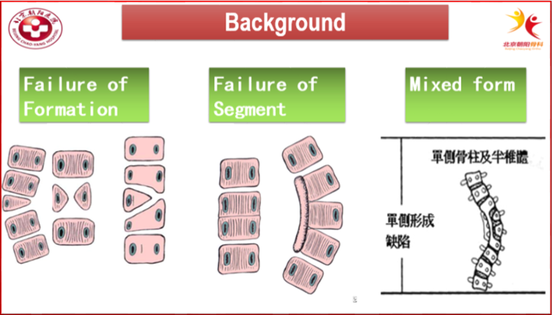 CS椎体异常的类型多种多样包括三型: I型-椎体形成障碍型(如楔形椎、半椎体或蝴蝶椎等);II型-椎体分节不良型(如阻滞椎、骨桥形成等);III型混合型,既有椎体形成障碍又有椎体分节不良。