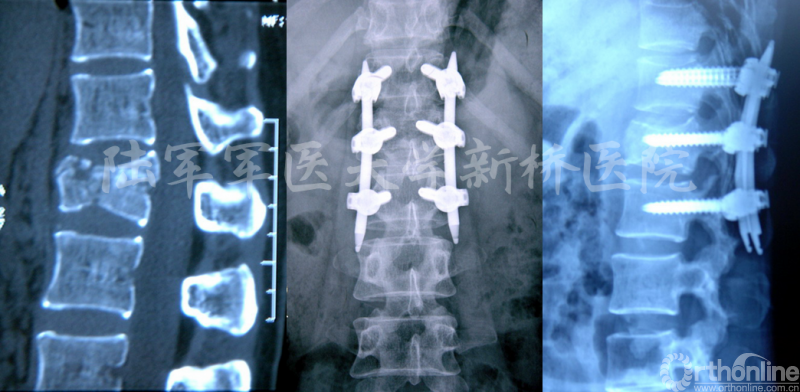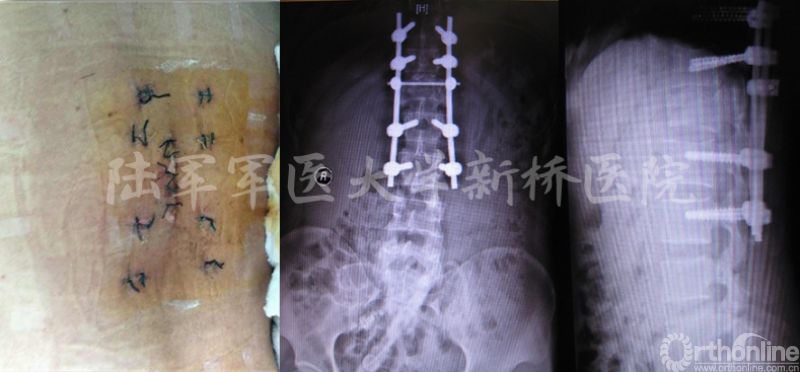脊柱内固定系统有效的恢复了椎体的高度,矫正了脊柱的后凸畸形,也为椎体重建提供了空间,可以通过经伤椎椎弓根螺钉固定联合经伤椎植骨或椎体成形术,能有效稳定脊柱的前中柱、恢复椎体高度,术后达到椎体间骨性融合,而对于未进行融合的病例,节段间的微动能加速椎弓根螺钉的疲劳断裂,这种情况下应尽早取出内固定物。