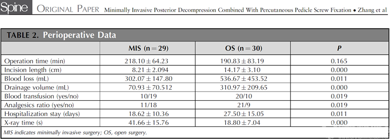 罗春山[22]等通过肌电图检查随访微创经皮椎弓根螺钉固定技术治疗的患者,发现微创技术无明显的椎旁肌失神经肌颤电位出现,而开放手术者可检测到失神经肌颤电位,这说明了经皮椎弓根螺钉固定技术可减少椎旁肌神经的损伤。