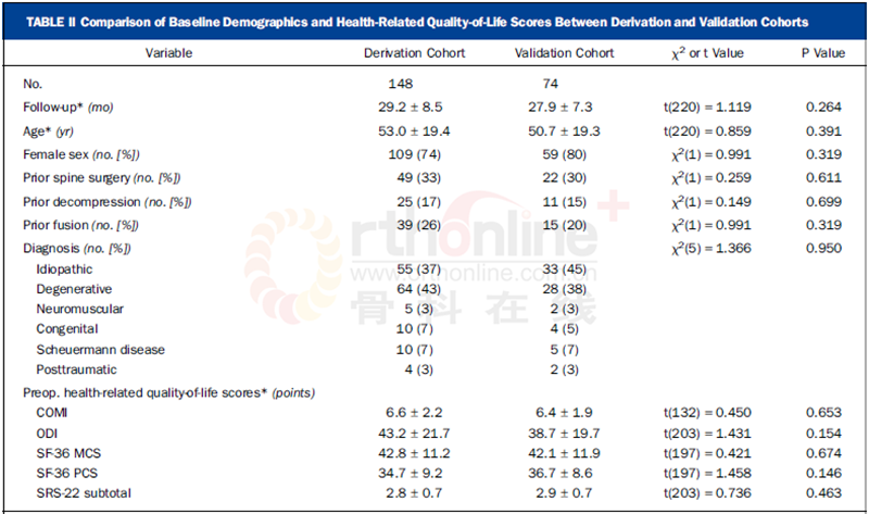 该研究由欧洲脊柱研究学组(European Spine Study Group, ESSG)完成,回顾分析了欧洲6个中心的连续病例,纳入标准为: