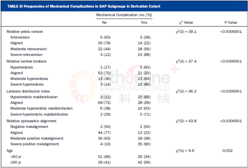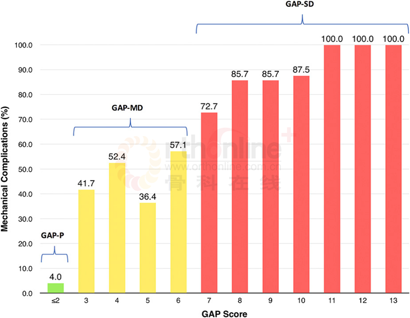图5.根据GAP评分系统计算的术后机械性并发症发生率(GAP-P=平衡,GAP-MD=中度不平衡,GAP-SD=重度不平衡)