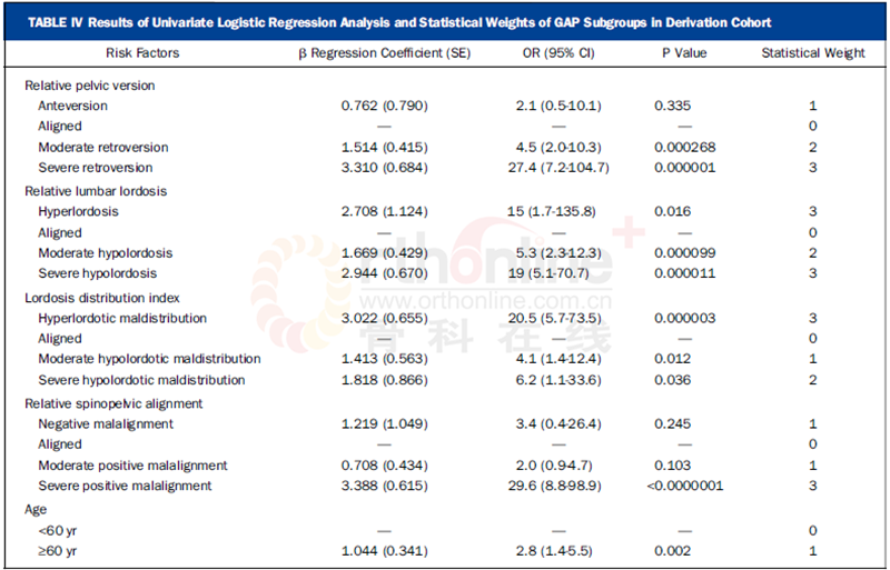 第五个维度是年龄。小于60岁赋值0分,大于等于60岁赋值1分。总分0-2分为平衡脊柱,3-6分为中度失平衡脊柱,≥7分为重度失平衡脊柱。