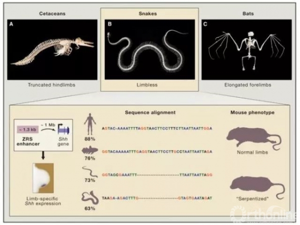 图3 蛇四肢的退化,是因为一段保守基因序列的改变导致