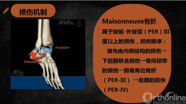 导语:特殊类型踝关节骨折虽然临床少见,但是其诊断、治疗不准确会带来诸多不良后遗症,以致踝关节功能障碍,为了让大家更好的认识特殊类型的踝关节骨折,来自湖南师范大学附属岳阳医院(岳阳市二人民医院)的伍勇医生为我们带来系列文章,第一篇为Maisonneuve骨折诊断与治疗的介绍,请详见下文分解。