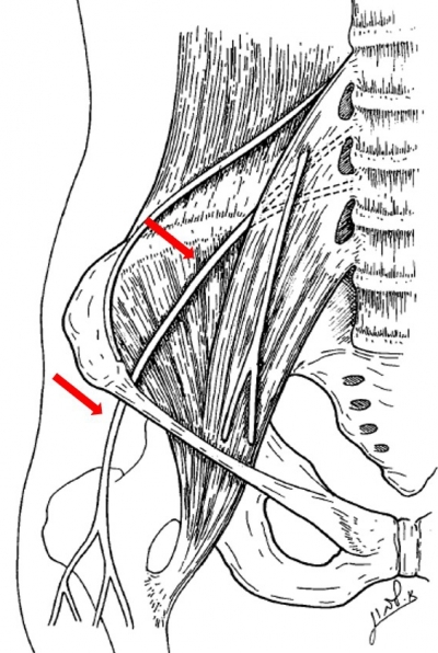 同时,在文中开始提到的后入路脊柱手术,也可能会造成股外侧皮神经的压迫。在患者采取俯卧位的同时,会导致腹部以及腔静脉承受额外的压力,从而导致术中出血的可能性。为了减轻在腹壁和大血管的机械压力,手术医生通过体位架抬高病人,空虚其胸腹部以利于患者呼吸,并使躯干部血流再分配,以减少术中出血。但是,长时间的受压造成局部软组织损伤,最终导致临近的周围神经比如股外侧皮神经的受压。