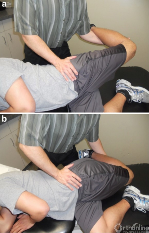 骨盆按压检查是2007年由Nouraei等人首次描述,其诊断MP的敏感性为95%,特异性为93.3%。检查方法:患者处于侧卧姿势,症状腿在上。检查者施加一个向下的压力在骨盆上,保持压力45秒。如果病人诉症状缓解则认为是阳性。